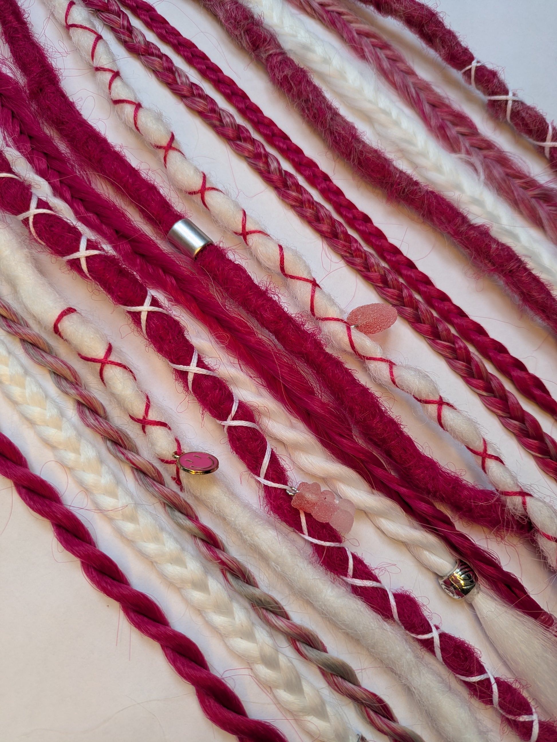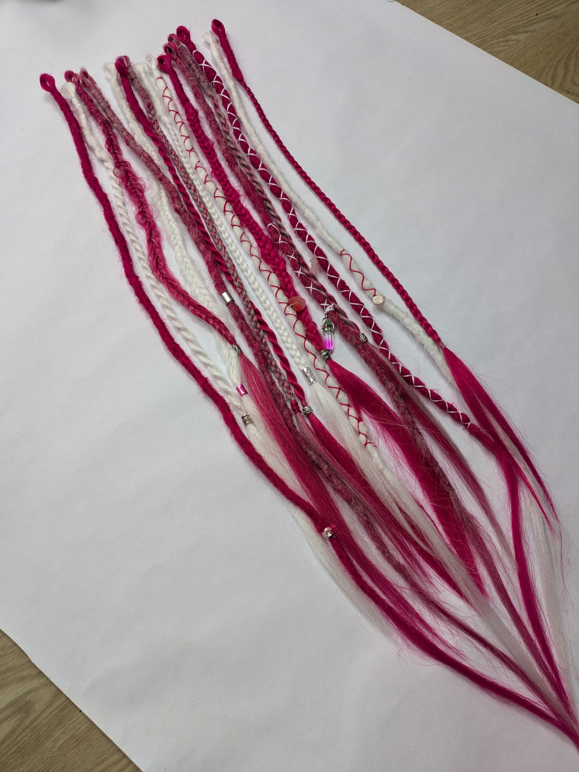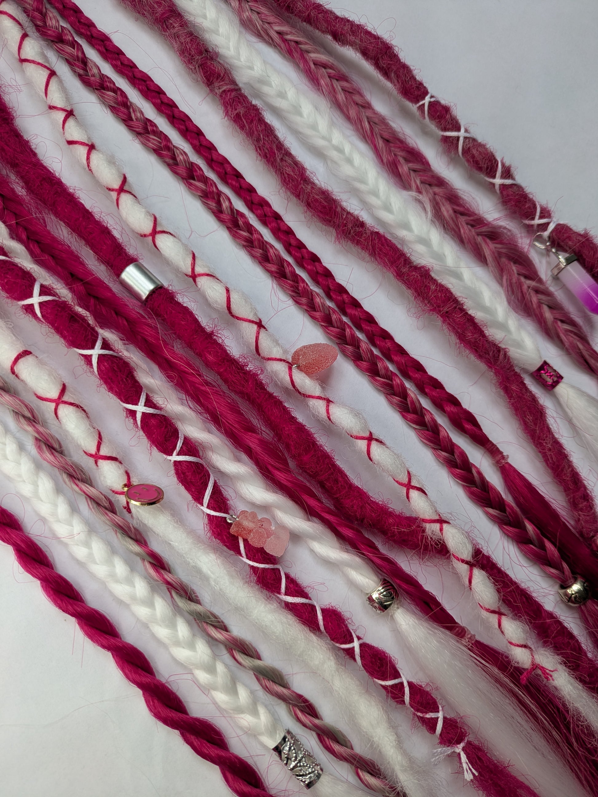 Be My Valentine 💖 READY TO SHIP dreadlock accent set white and cherry blossom pink 🌸 dreads braids. 15 x single ended braid in extensions.High Quality Crochet made with Henlon.