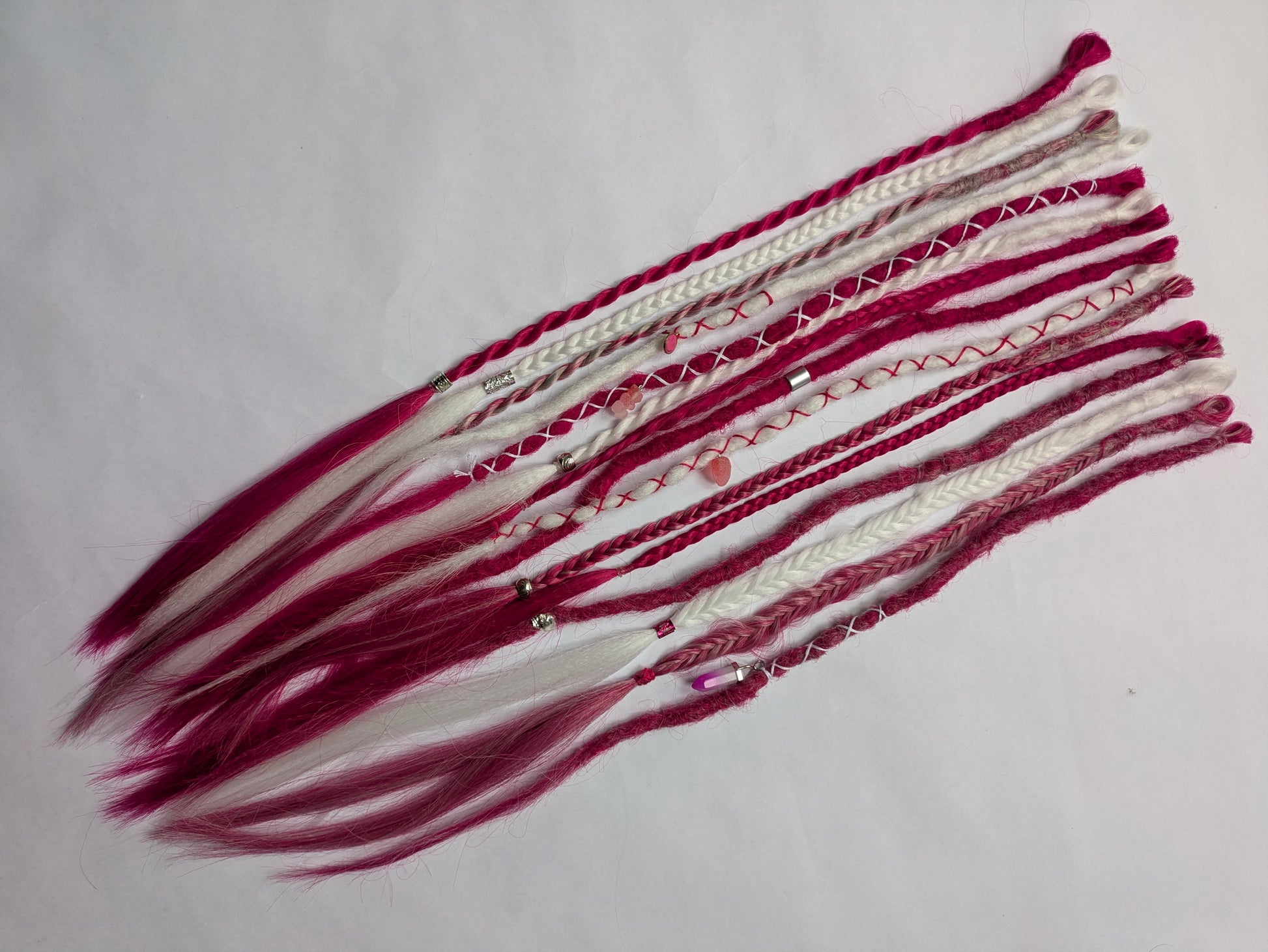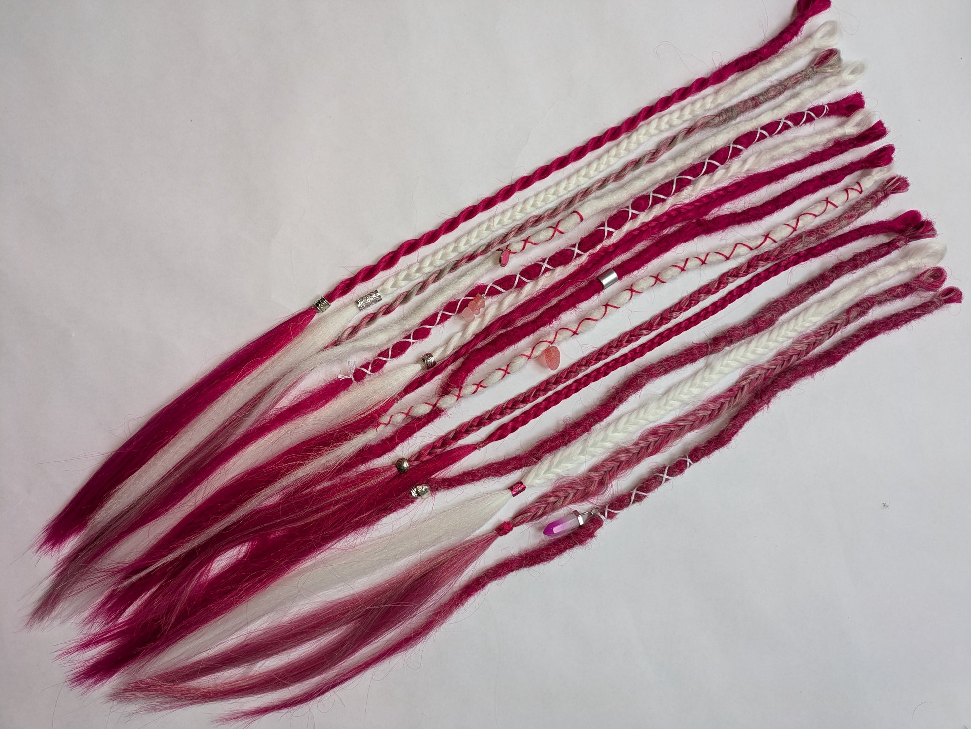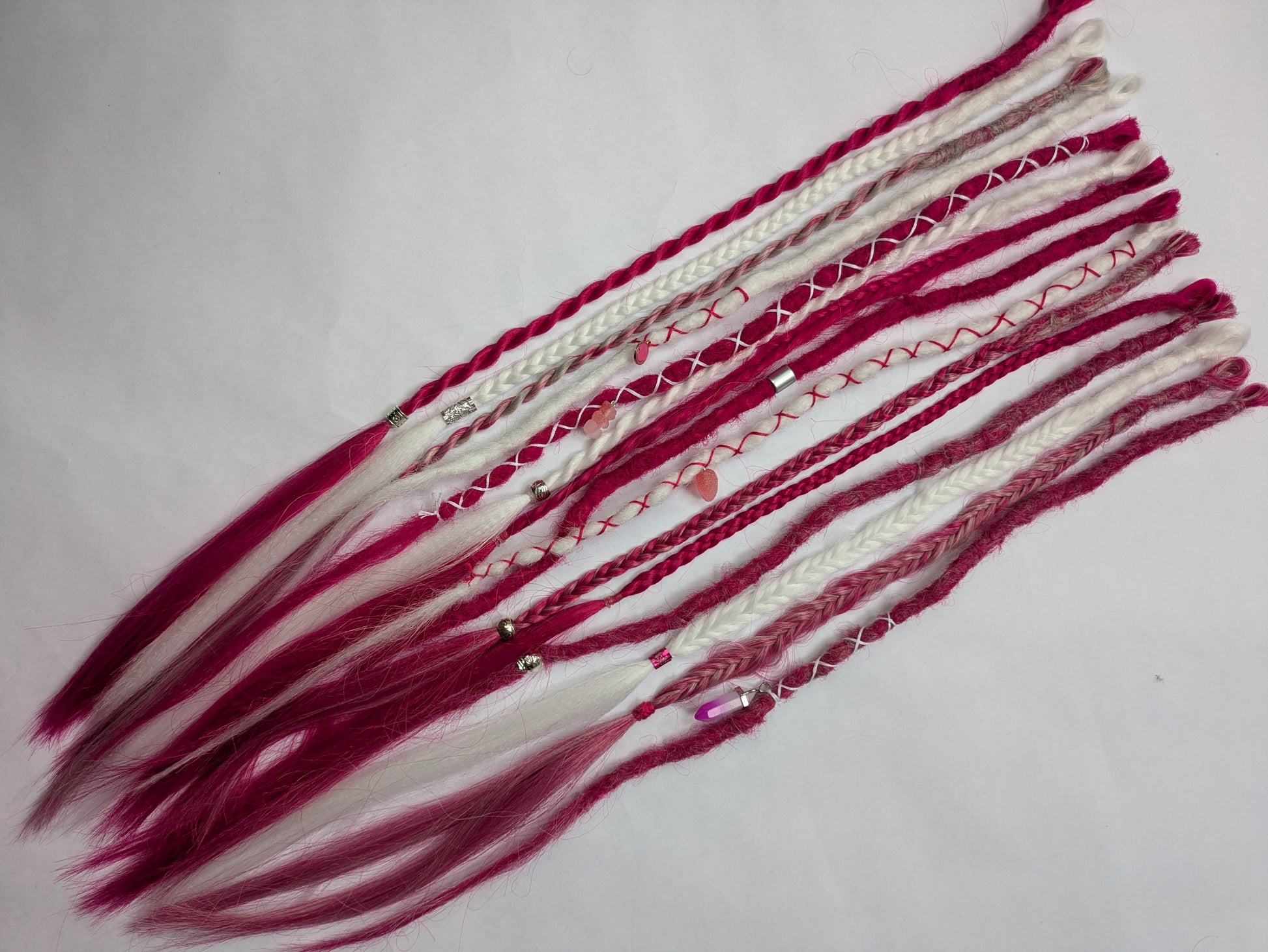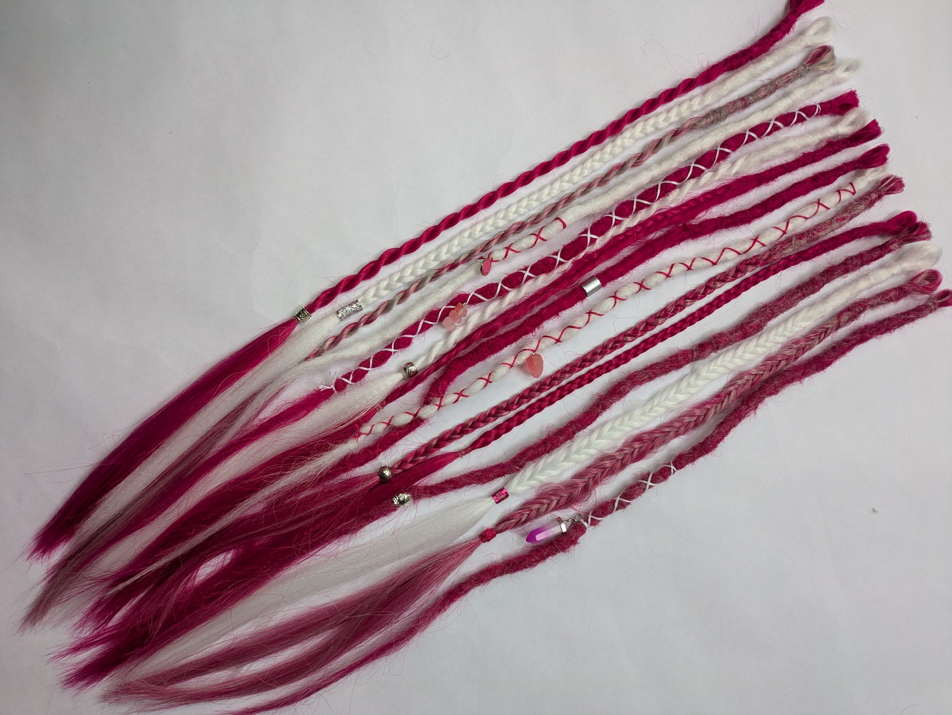 Be My Valentine 💖 READY TO SHIP dreadlock accent set white and cherry blossom pink 🌸 dreads braids. 15 x single ended braid in extensions.High Quality Crochet made with Henlon.