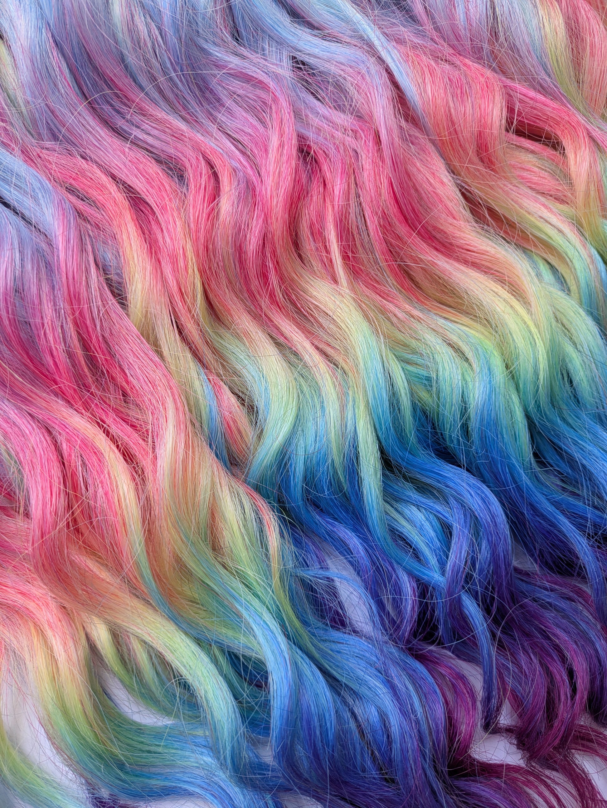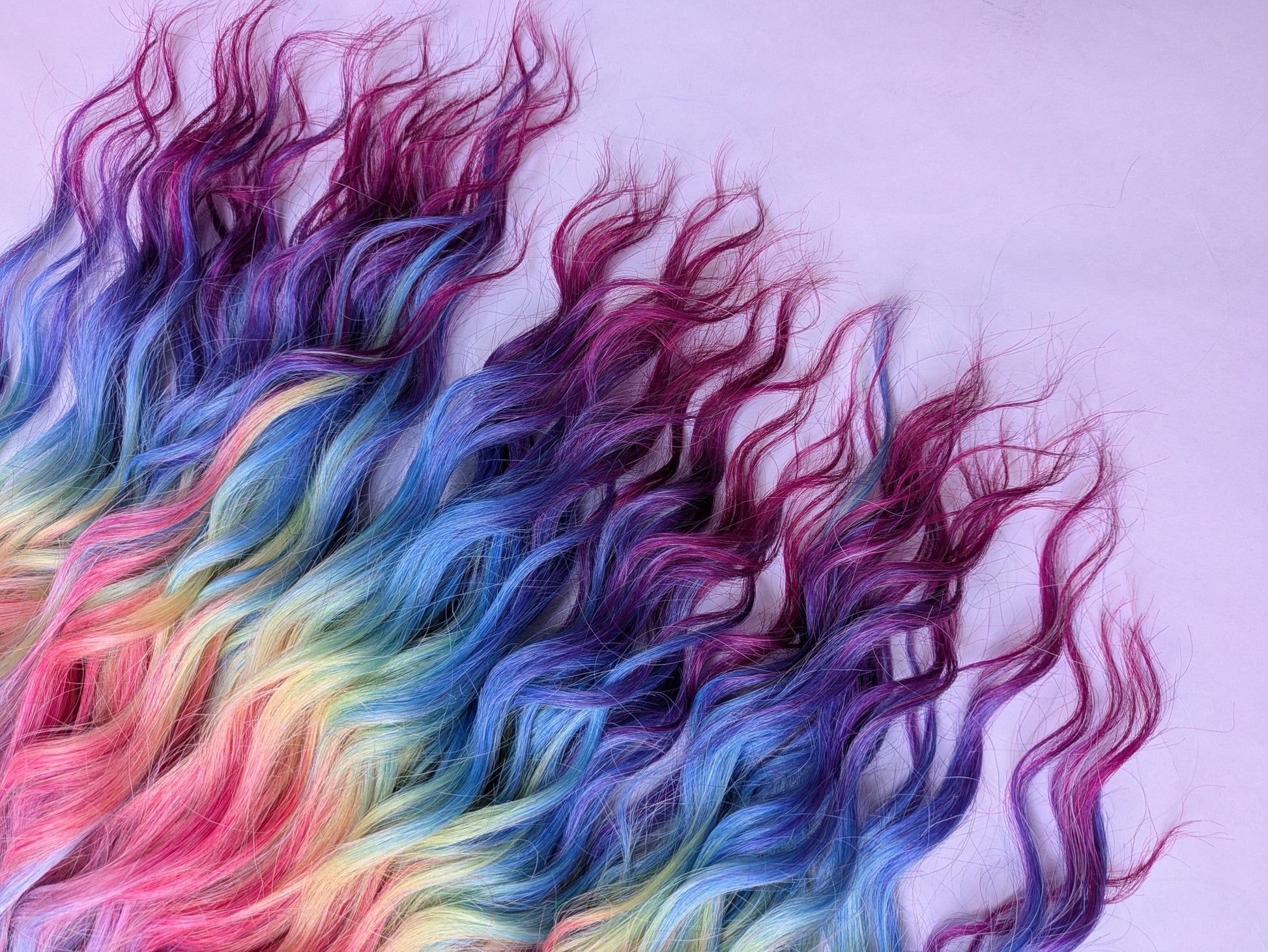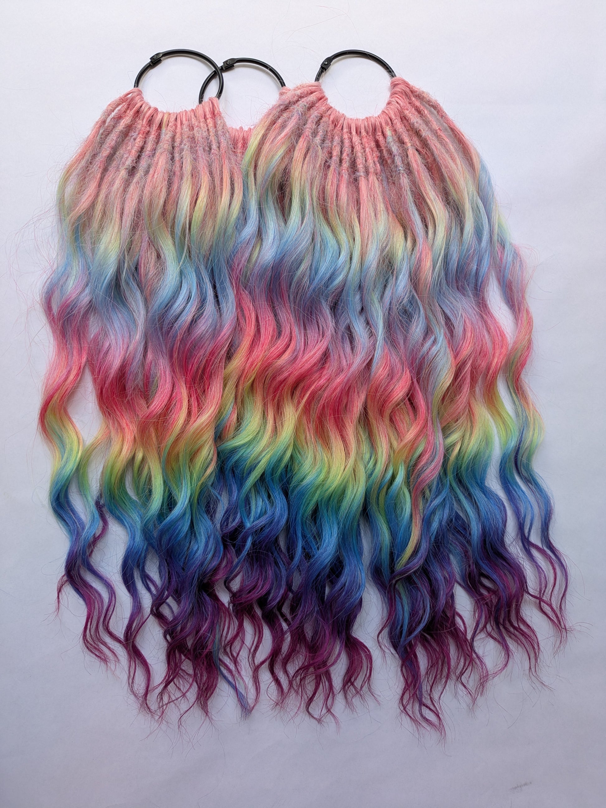 Ready to Ship! Full head of brushable Hybrid Locks (Anna Curls) in Rainbow